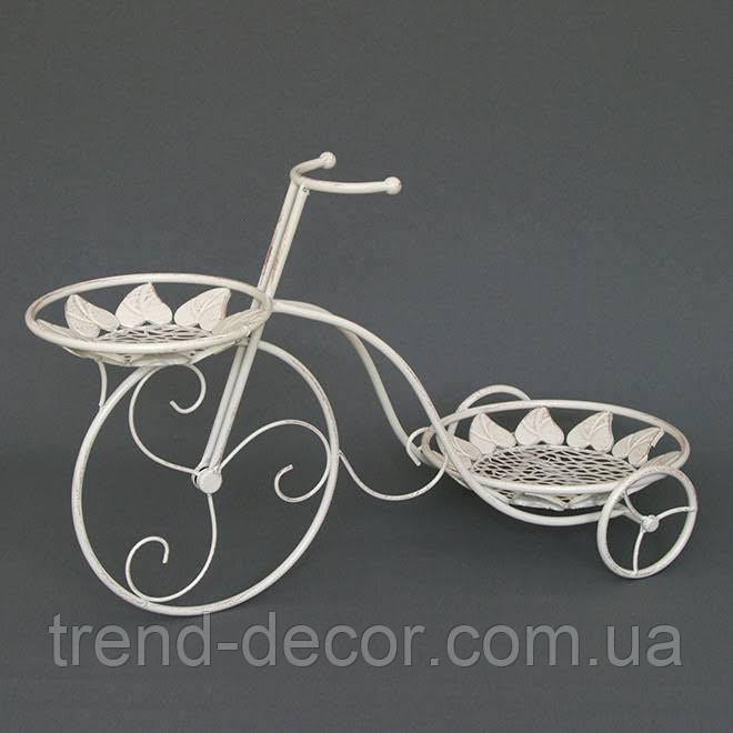 Підставка Велосипед Прованс призначена для зручного, компактного і красивого розміщення двох квіткових горщиків. Вона дозволяє декорувати інтер'єр житлового або офісного приміщення живими квітами, спрощує догляд за кімнатними рослинами. Підставка білого кольору буде однаково добре виглядати на балконі, веранді або в кімнаті. Оригінальна форма підставки стане прекрасним доповненням дизайну.